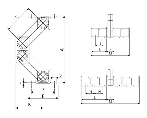 | Model / Type | G (N) | A Yüksüz (mm) | A Max Yük (mm) | B Yüksüz (mm) | B Max Yük (mm) | C | ØD | E | F | H | K | L | M | N | Ağırlık / Weight (Kg) |
